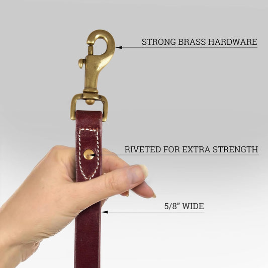 Leather Dog Training Leash - Brown 6 Ft Long X 3/4" Wide Dog Walking Leash Best for Medium Large Dogs, Latigo Leather Dog Lead & Puppy Trainer Leash