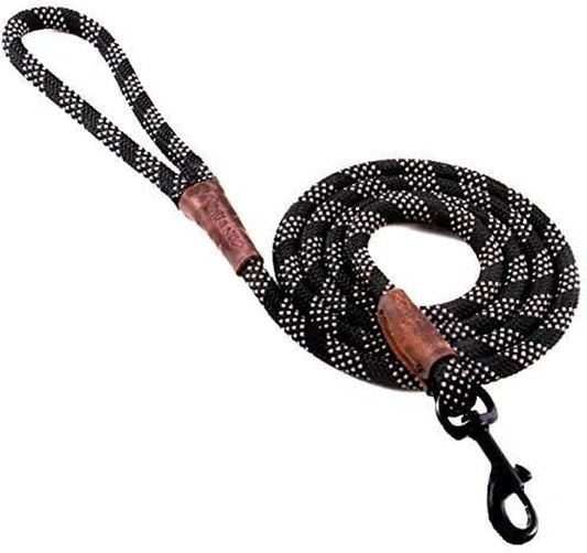Rope Leash Reflective - 6 FT X 1/2" (Black, Donates to Dog Rescue)